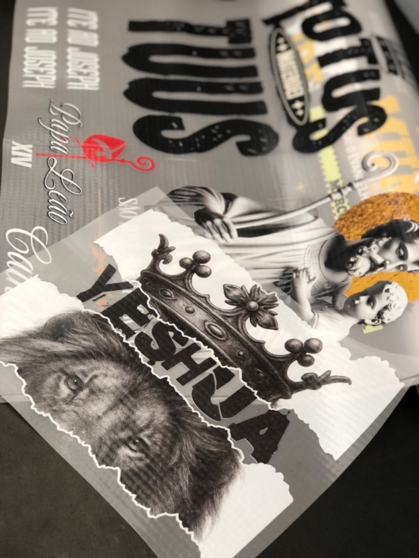 * Fixe a estampa com fita térmica para evitar movimentação na prensagem.
